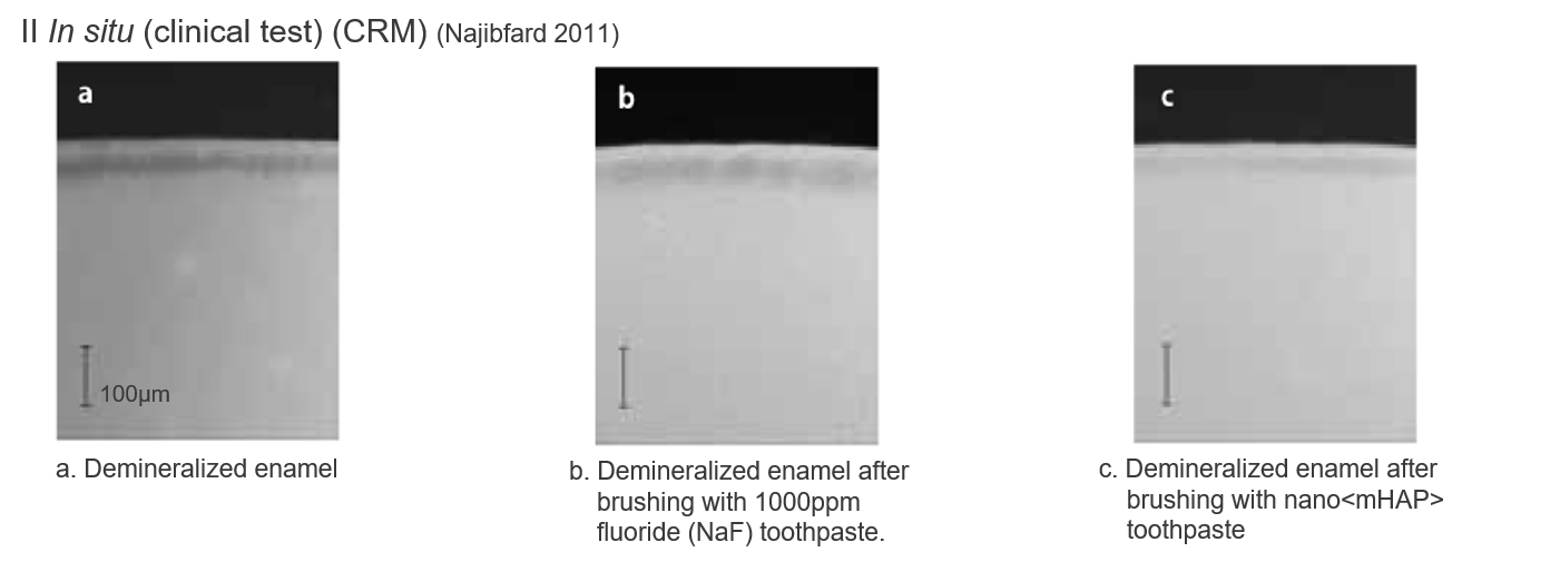 2. K.Najibfard et al, Remineralization of Early Caries Lesions by a Nano-Hydroxyapatite Dentifrice, J Clin Dent 22(5):139-43, 2011
