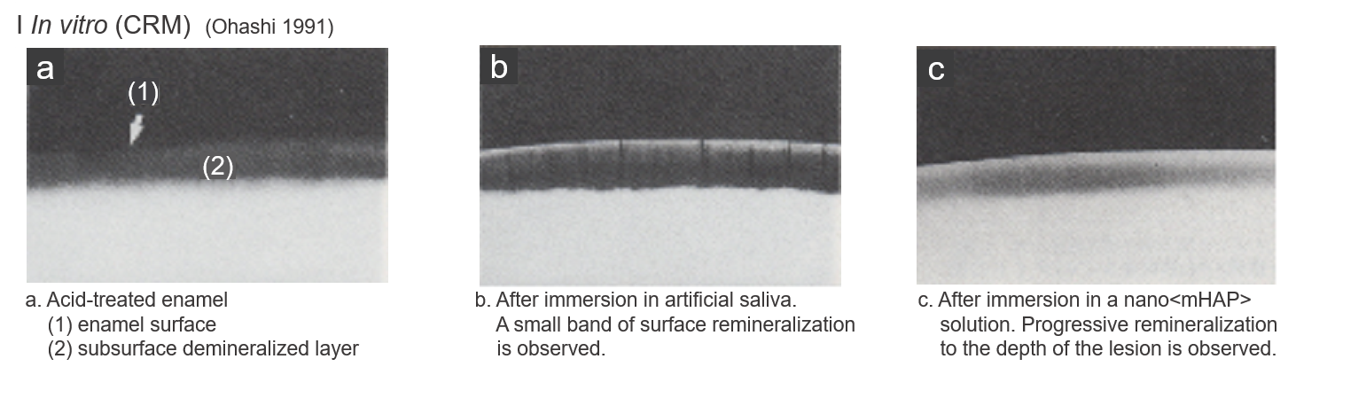 1. T.Ohashi et al, Remineralization of Artificial Caries Lesions by Hydroxyapatite, J Dent Hlth 41(2): 214-223, 1991 (Japanese language with English abstract)