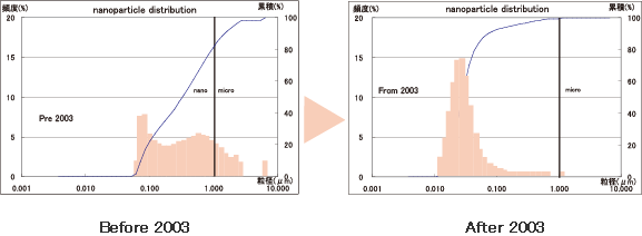 SANGI's original ingredient nano<mHAP> is a non-abrasive form of hydroxyapatite developed specifically for oral care use. It is recognized in Japan as having three anti-caries functions: (1) adhering to and helping remove decay-causing bacteria and plaque, (2) filling microscopic fissures on the tooth surface which can harbor plaque, and (3) remineralizing demineralized areas below the tooth surface which are the first step toward decay (incipient caries lesions). It also relieves hypersensitivity by occluding and forming a coating over exposed dentinal tubules. Initially 3-figure nano-scale (with primary particles averaging around 100nm), it was reduced in size to 2-figure nano-scale (averaging around 50nm) in 2003, enhancing its remineralizing effect. (1 nanometer = one millionth of a millimeter)