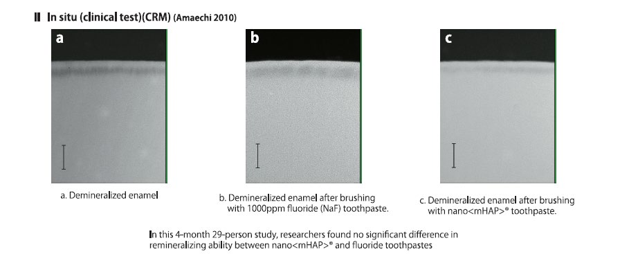 2. K.Najibfard et al, Remineralization of Early Caries Lesions by a Nano-Hydroxyapatite Dentifrice, J Clin Dent 22(5):139-43, 2011
