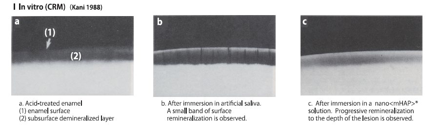 1. T.Ohashi et al, Remineralization of Artificial Caries Lesions by Hydroxyapatite, J Dent Hlth 41(2): 214-223, 1991 (Japanese language with English abstract)